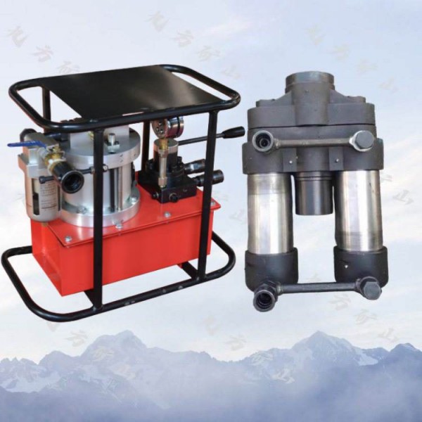 由气动油泵与双缸张拉千斤顶配套使用,是锚索预应力张拉的设备。;双缸千斤顶具有重量轻,稳定性好,且煤尘不易进到缸内,从而使千斤顶避免了因回不了缸而挂在顶板取不下来的情况。 可根据要求调整输出压力驱动千斤顶对锚索施加要求的预紧力。